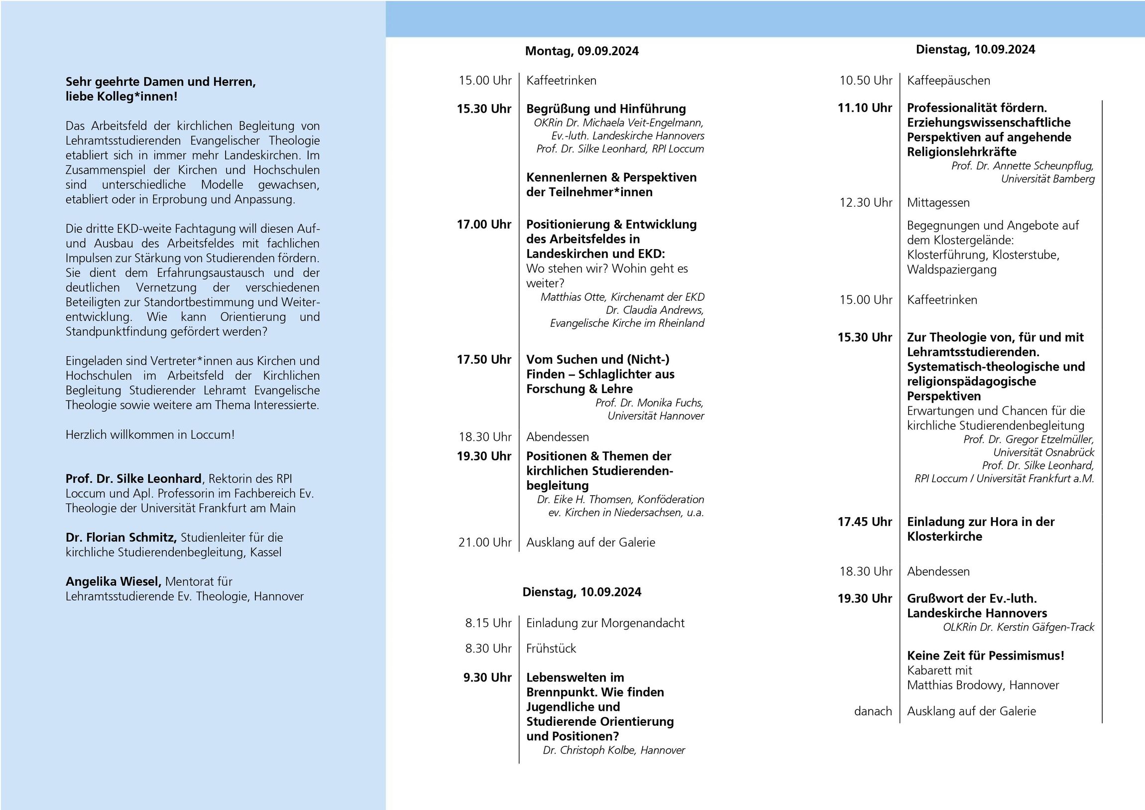 für Vertreter*innen aus Kirchen und Hochschulen im Arbeitsfeld der Kirchlichen Begleitung Studierender für das Lehramt Evangelische Theologie und weitere am Thema Interessierte